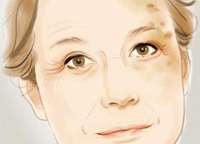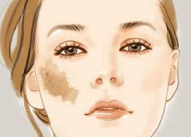 黃褐斑 黃褐斑也稱肝斑,為面部的黃褐色色素沉著。多對(duì)稱蝶形分布于頰部。多見