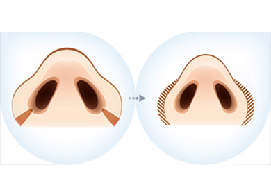寬鼻整形術(shù) 寬鼻矯正手術(shù)包括鼻頭寬大和鼻梁寬大兩種類型;通常鼻頭寬大,需要行鼻