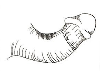 隱匿性陰莖成形術(shù) 一是使短的陰莖皮膚得到延長和將包皮腔擴(kuò)大;二是將隱匿的陰莖海綿體牽出