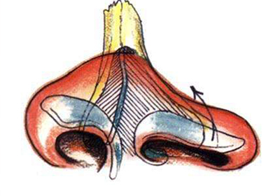 鼻尖縮小術(shù) 鼻頭縮小術(shù)一般沿鼻翼緣作蝶形切口,分離皮膚暴露鼻翼軟骨,將鼻翼軟骨